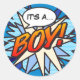 Sticker Rond C'EST UN GARÇON Genre Reveal Fun Retro Comic Book
