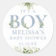 C'est un autocollant de baby shower garçon avec une élégante typographie bleue poussiéreuse et un joli feuillage botanique. Conçu par Thisisnotme©