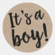 La main a écrit "It's a Boy" en noir contre un arrière - plan de style kraft. Utilisez comme étiquette de faveur, autocollant de faire-part et sceau d'enveloppe...tant d'usages !