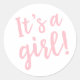 La main a écrit "It's a Girl" en rose contre un arrière - plan blanc immaculé. Utilisez comme étiquette de faveur, autocollant de faire-part et sceau d'enveloppe...tant d'usages !