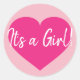 Cet autocollant/étiquette rond est orné d'un coeur rose fraichement chaud, recouvert par le texte modèle, "C'est une fille !" Cliquez sur "Personnaliser" pour redimensionner/repositionner l'image du coeur rose chaud, modifier la couleur de l'arrière - plan et/ou ajouter du texte. Choisissez la taille, le style et la couleur de la police. Idéal pour les fiançailles, les douches nuptiales, les dîners de répétition, les faveurs du mariage, de l'anniversaire ou de la Saint-Valentin. L'autocollant rond de coeur rose chaud fonctionne bien comme un ajout festif aux bouteilles de vin, bonbons, sacs cadeaux, ou d'autres faveurs de fête.