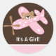 Avion mignon C'est une fille autocollant d'avion avec un petit bébé ours doux à cheval dans un avion rose sur un arrière - plan brun riche avec un accent pointillé de polka. Un autocollant parfait pour les faveurs pour bébés ou enveloppes d'invitation sceaux & annonces de naissance! Des invitations de correspondance, des annonces de naissance, des timbres-poste et des notes de remerciement sont disponibles dans notre boutique à l'adresse www.celebrateitinvites.com. ©Cocoa Studio
