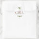 Autocollant pour baby shower 'C'est une fille' avec une typographie élégante rose poudré et un beau feuillage botanique. Conçu par Thisisnotme©