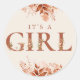 Sticker Rond C'Est Une Fille Rustique Baby shower Floral Automn