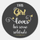 Cette fille lui aime une certaine solitude dans les polices mélangées blanc et jaune doré. Le mot fille est surmonté d'une couronne blanche et les amours est embelli de rouleaux et de coeurs dorés. Peut être personnalisé avec n'importe quel sujet.