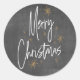 Ajoutez une touche festive à vos cartes de fin de année et cadeaux de Noël avec cet autocollant tendance avec un style arrière - plan de tableau noir et des accents de parties scintillant en faux or scintillants.