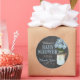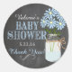 Chic populaire, vintage look de tableau, Baby shower invité préféré autocollant en bleu. Un bocal rustique en maçon de campagne rempli de fleurs bleues, un tableau noir arrière - plan. Customisé avec le nom de la mère, la date du baby shower et "merci". Ajoutez des produits correspondants ! Visitez mon magasin "La princesse hongroise" à l'adresse www.zazzle.com/hungaricanprincess*. Regardez dans ma catégorie de service "Oh Baby". Félicitation !