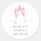 Un autocollant de douche nuptiale élégant et festif est doté d'une paire de lunettes de champagne clinquant en aquarelle, remplies de mousseux roses. Personnalisez avec votre nom d'événement en lettres gris chic. Parfait pour sceller les enveloppes d'invitation de douche nuptiale ou comme une touche finale pour les faveurs.