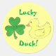 Sticker Rond Chanceux Shamrock de canard Ducky St. Patricks Sti