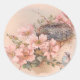 Soft rose Spring thème avec de charmants roses sauvages encadrant un prochain et petit oiseau assis sur une brindille à proximité.