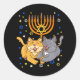 Sticker Rond Chanukah Juif Menorah Kitten Chat drôle Hanoukka