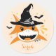 Charmant Requin Sorcière d'Halloween Nom Personnalisé Autocollant Rond Classique
