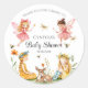 Sticker Rond Charmante Baby shower des animaux de bois des fées