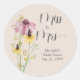 Étiquette de shower nuptial Demoiselle à Mme prête à être personnalisée. Le design présente des fleurs sauvages rustiques de campagne dans l'aquarelle, y compris des échinacées roses et jaunes. Il est écrit à la main en calligraphie sautillante avec Demoiselle à Mme et le modèle est configuré pour que vous puissiez le personnaliser. Un design tendance cottagecore parfait pour les thèmes bohèmes de jardin et de fleurs sauvages. Veuillez parcourir ma boutique dans la collection Charme de Fleur Sauvage, pour les articles assortis.
