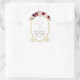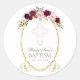 Sticker Rond Charme Marsala Floral Baptême Bourgogne Monogramme