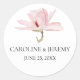 Une jolie fleur de magnolia rose pâle en aquarelle rose met en évidence cet autocollant rond. Il est idéal pour les mariages, les douches nuptiales, les fêtes d'anniversaire ou d'autres événements spéciaux. Il vous suffit de modifier l'exemple de texte avec le libellé souhaité, les noms, etc.