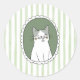 Faites ressortir vos autocollants avec cet autocollant de chat vert ludique présentant des rayures verticales imparfaites en arrière-plan. Le design place un chat charmant au premier plan, créant un point focal audacieux tandis que des rayures verticales subtiles et imparfaites ajoutent une toile de fond artistique unique.