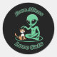 Sticker Rond Chat Avec Alien. Amitié adorable. Meilleures relat