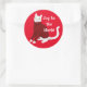 Sticker Rond Chat blanc mignon en Sweat de Noël Rouge