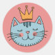 Sticker Rond Chat Bleu Whimsical Avec Couronne Jaune