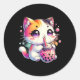 Sticker Rond Chat Boba Tea Anime Japonais Kawaii Neko Bubble Te