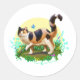 Mon illustration originale et le design d'un chat calico moelleux observant un papillon dans le jardin !