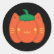 Sticker Rond Chat Citrouille Kawaii Halloween