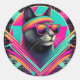Sticker Rond Chat Cool rétro