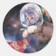 Sticker Rond Chat d'astronaute chassant une tranche de pizza