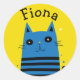 Sticker Rond Chat de dessin animé moderne bleu et jaune personn