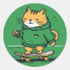 Sticker Rond Chat De Patinage Sympa Sur Skateboard