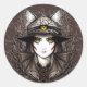 Sticker Rond Chat de sorcière Halloween Déplaisant Portrait mig