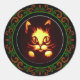 Sticker Rond Chat d'Halloween vert orange jaune brillant