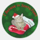 Sticker Rond Chat en attente de Père Noël
