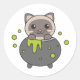 Sticker Rond Chat Joyeux Halloween Cauldron Bat