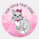 Sticker Rond Chat Kitty gris et blanc personnalisé