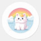 Sticker Rond Chat mignon avec arc-en-ciel et nuages