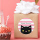 Sticker avec un mignon chat noir, et rayures rose et blanc. Ce livre appartient à l'autocollant.