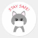 Sticker Rond CHAT MIGNON PORTANT UN MASQUE RESTEZ PRUDENT Autoc