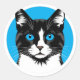Sticker Rond Chat noir et blanc aux yeux bleus