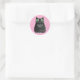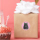 Sticker Rond Chat noir gras avec yeux verts Texte personnalisé