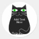 Sticker Rond Chat noir gras avec yeux verts Texte personnalisé