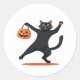 Sticker Rond Chat noir grognant à la bash d'Halloween, balançan