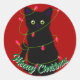 Sticker Rond Chat noir Meowy Noël rouge scintillant lumières
