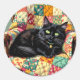 Sticker Rond Chat noir mignon sur chaise à rocher