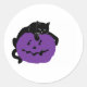 Sticker Rond Chat Noir Sur Un Citrouille Violet