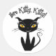 Sticker Rond Chat Noir Whimsical Ici Kitty, Kitty !
