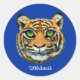 Sticker Rond Chat sauvage sur fond bleu