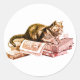 Sticker Rond Chat Se Trouvant Sur Une Pile De Livre