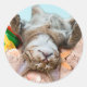 Sticker Rond Chat sur la plage et ciel bleu